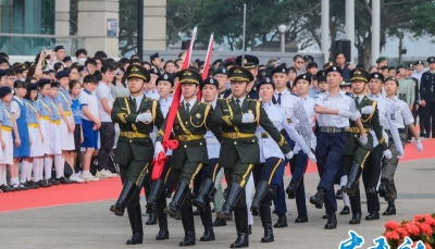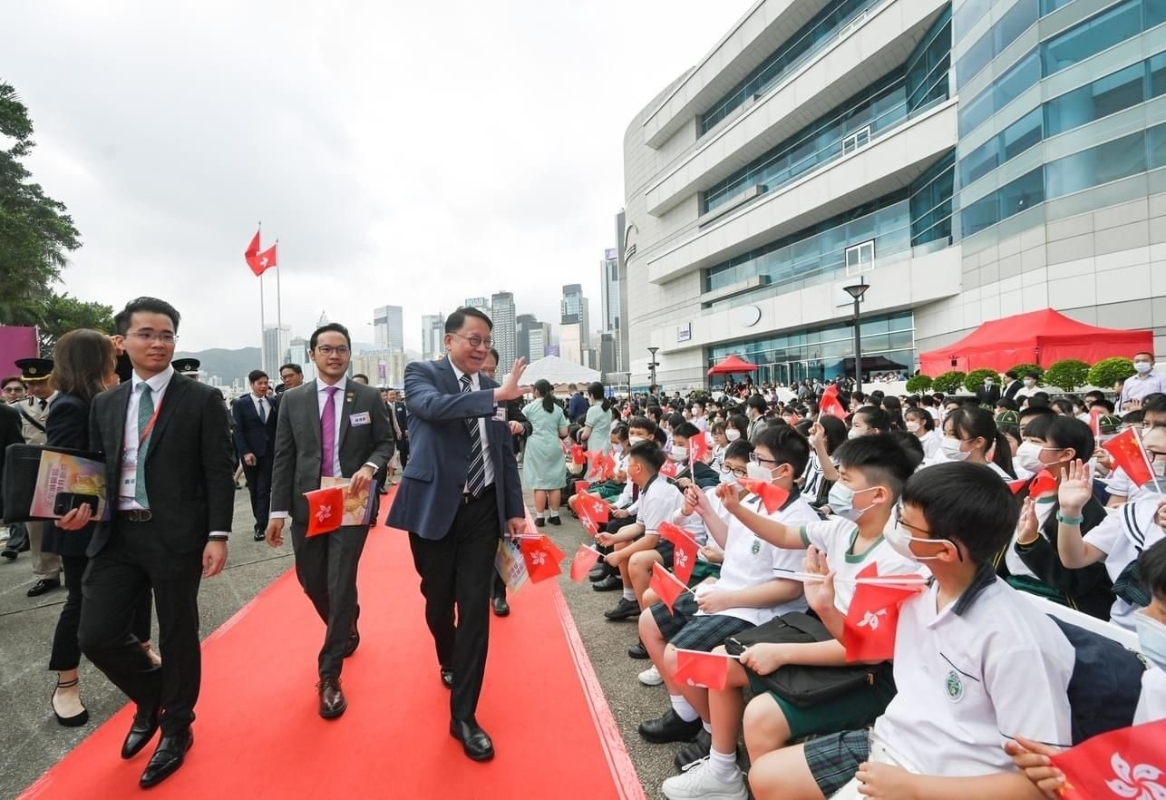 香港新聞網5月4日電 今日是五四運動104周年,香港特區政府政務司司長陳國基早上出席香港各界青少年活動委員會在灣仔金紫荊廣場舉行的升旗禮。