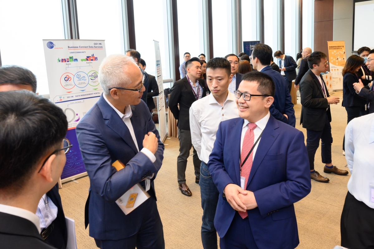 香港金融管理局副總裁李達志(左)在數據峰會參觀多個數據分析服務供應商和數據提供方在峰會現場設置的展覽。 是次峰會的專題討論環節探討了金融服務業如何把握機遇、加強自身的數碼和創新能力,以應對日漸增長的客戶需求。此外,峰會亦強調善用數據和數碼化所帶來的潛在效益,並匯聚了十多家數據提供方和數據分析服務供應商於峰會現場分享經驗。