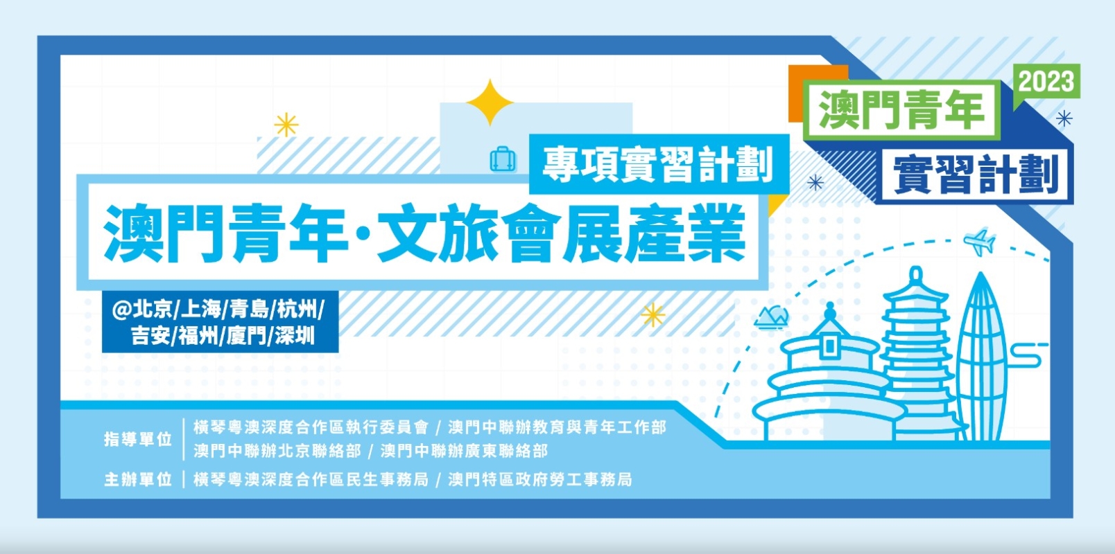 “澳門青年‧文旅會展產業專項實習計劃”。 崗位涉及4範疇並設津貼 是次實習計劃參加對象須持有2019年9月後取得之高等教育學士或以上學位的澳門居民,且具備實習崗位所需技能及工作經驗,實習崗位涉及文旅運營、會展管理、平面設計及3D設計4個範疇,實習地點散佈於北京市、上海市、杭州市、青島市、吉安市、福州市、廈門市及深圳市。 實習期間提供住宿及基本生活開支的補貼,每名實習人員除可獲勞工局每月發放5,000澳門元生活津貼,一次性500澳門元至4,000澳門元(視實習地點而定)往返交通連旅行保險津貼外,橫琴民生局亦會每月發放4,000人民幣住宿津貼及購買意外傷害保險,其餘費用由實習人員自行承擔。 辦講座助參加者了解文旅會展營銷發展趨勢 為協助有意參加實習計劃的青年了解內地文旅和會展行業營銷發展的趨勢,勞工局已於5月13日舉辦“職問職講"行業講座,並邀請中青旅聯科首席策略官宋磊於擔任的線上主講嘉賓,透過內地多個知名文旅景點為案例,解構營銷手段如何賦能文旅會展業,促進經濟多元發展,嘉賓亦回答了多個參加者的提問。 設專頁查詢及申請報名 有興趣參加的澳門青年可由即日起至5月19日登入勞工局有關實習計劃專頁了解計劃詳情及網上進行申請www.dsal.gov.mo/zh_tw/standard/employment_recruitment_intern.html。如欲查詢計劃內容,可於辦公時間內致電勞工局范小姐+853 8399 9817、沈小姐+853 8399 9765或橫琴民生局潘先生+86 756 8841227。 【編輯:黃璇】