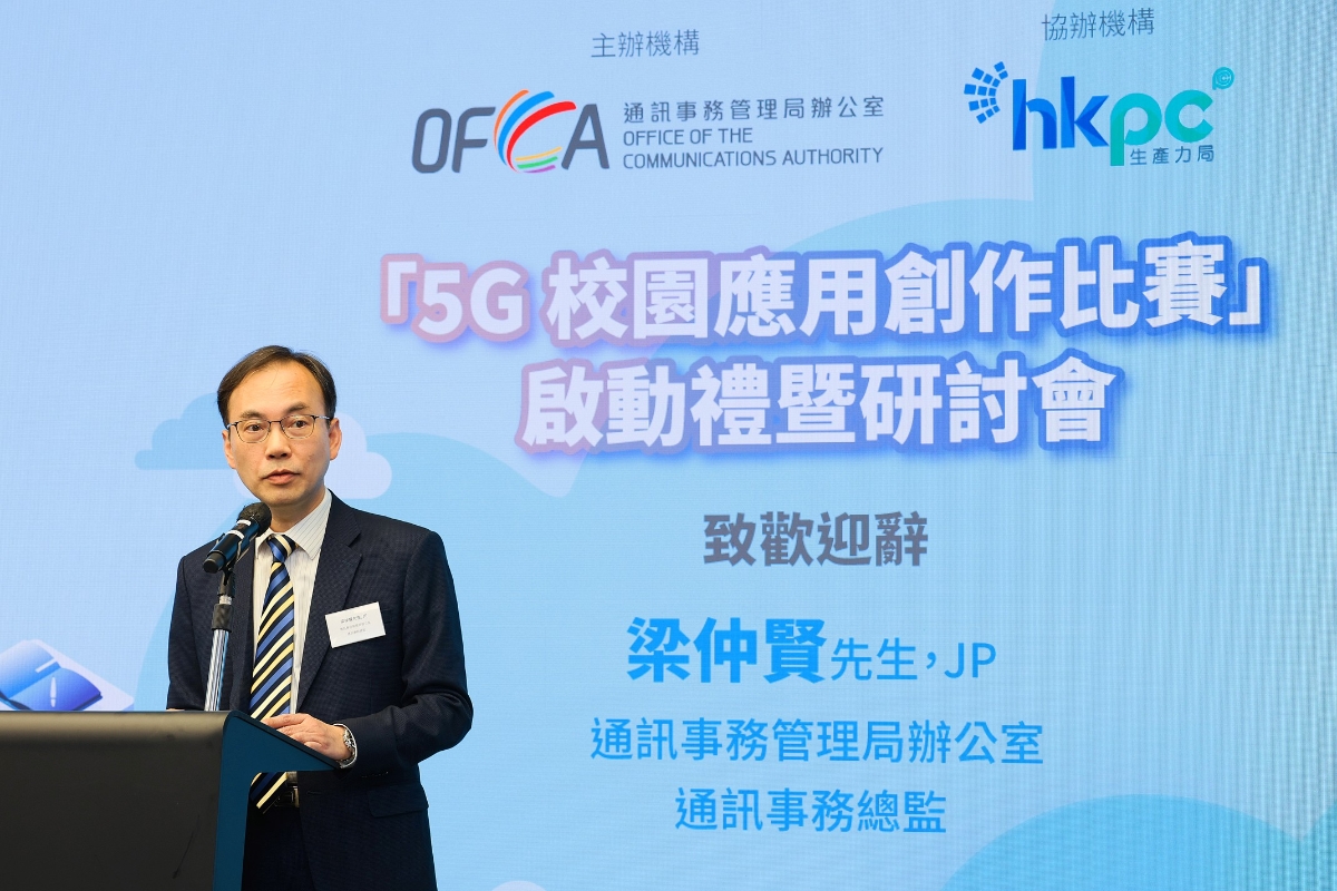 通訊事務總監梁仲賢在“5G校園應用創作比賽”啟動禮暨研討會致歡迎辭。 通訊事務總監梁仲賢表示:“5G的快速傳輸速度、超可靠和低延遲時間的特性,不單可應用於流動通訊服務行業,還可以涵蓋其他多個行業的創新應用,例如醫療、建築、工程、交通、物業管理、物流等。教育界當然亦不會例外,5G技術的應用在協助提升教學質素、改善教學模式、以至增進學生的學習興趣及創新發展,潛力非常巨大。” 梁仲賢續說:“通訊辦是次舉辦‘5G校園應用創作比賽’的目的,旨在通過比賽,增加學生對5G技術和應用的了解,鼓勵學校、教師和學生透過運用5G技術,將5G融入教育以豐富校園生活,改善學習環境、優化教學資源使用、改善校園以至鄰近社區的環境或設施。同時藉此推動青少年發揮創意,啓發他們日後投身創意科技行業的興趣。” “5G校園應用創作比賽”將分不同階段進行,包括培訓工作坊、初賽、決賽、頒獎典禮等活動。大會將安排參賽隊伍參與培訓工作坊,以協助他們將5G智慧校園的概念作品具體化,從而設計5G的應用方案。 是次比賽獲得多間通訊業界及教育機構的支持,包括香港通訊業聯會、資訊科技教育領袖協會、香港電腦教育學會、香港才能教育研究會、香港中文中學聯會、香港電腦學會、香港教育工作者聯會及香港科技創新教育聯盟。 比賽報名截止日期為5月31日,有意參加比賽的學校隊伍須由3至5名學生組成,並由一名老師帶領。如欲參加比賽及了解更多比賽詳情,請瀏覽通訊辦網頁(www.ofca.gov.hk/5gcompetition)。 【編輯:黃璇】