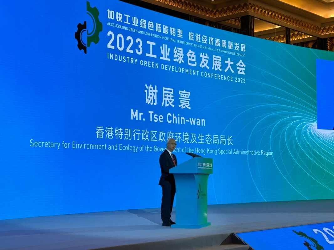 謝展寰在廣州舉辦的2023工業綠色發展大會上發言。 2023工業綠色發展大會由國家工業和信息化部(工信部)、廣東省人民政府,以及廣州市人民政府共同主辦,主題為“加快工業綠色低碳轉型促進經濟高質量發展”。謝展寰在主旨發言時表示,為配合國家的“雙碳”目標,香港特別行政區(特區)政府在2021年發表《香港氣候行動藍圖2050》,訂下“淨零發電”、“節能綠建”、“綠色運輸”和“全民減廢”四大減碳策略,爭取在2035年前將碳排放總量從2005年的水平減半,並邁向2050年前達致碳中和的目標。 謝展寰又表示,要在不到30年實現碳中和,不但需要香港社會各界互相配合,更需要深化粵港澳大灣區之間的區域合作。特區政府一直透過粵港環保及應對氣候變化合作小組和港深環保合作專班等平台,與廣東省人民政府和深圳市人民政府就各項環保議題交流合作。 謝展寰說:“特區政府會繼續積極應對氣候變化,在多方面加快香港特區綠色轉型發展,實踐可持續發展,融入國家發展大局,為國家和全球治理氣候變化出一分力。” 隨後,謝展寰參觀2023工業綠色發展成果展,並與參展的港資企業會面,就推動社會綠色發展進行交流。成果展有超過180間國內外機構參與,為綠色低碳發展搭建高水平國際交流平台。 期間,謝展寰亦與十四屆全國政協副主席、中國農工民主黨中央常務副主席楊震,以及大會主辦單位的主要領導,包括工信部副部長辛國斌、廣東省副省長呂玉印、和廣州市副市長江智濤等會面,深化雙方就清潔生產、工業綠色發展及節能減排等議題的合作交流。 代表團成員包括氣候變化專員黃傳輝,以及來自環境及生態局、環境保護署和機電工程署的人員。 謝展寰今日下午返港。 (完) 【編輯:黃璇】