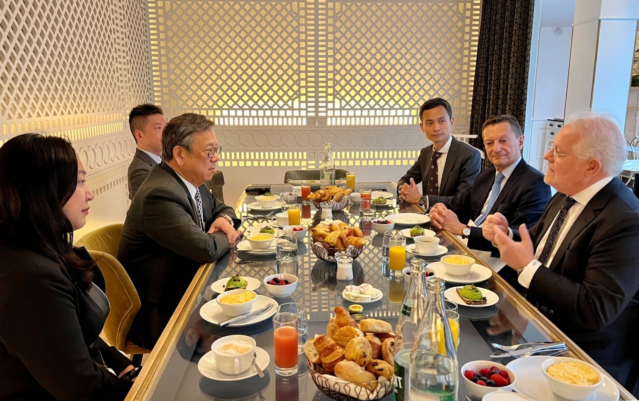丘應樺(左二)在會議前與法國香港商會進行早餐會議,推廣香港的優勢和機遇。 在會議期間,丘應樺與越南外交部部長裴青山會面,就加強雙邊關係交換意見。他亦與法國香港商會進行早餐會議,推廣香港的優勢和機遇。 丘應樺將於6月8日(巴黎時間)轉往匈牙利布達佩斯進行兩日訪問。 (完) 【編輯:黃璇】