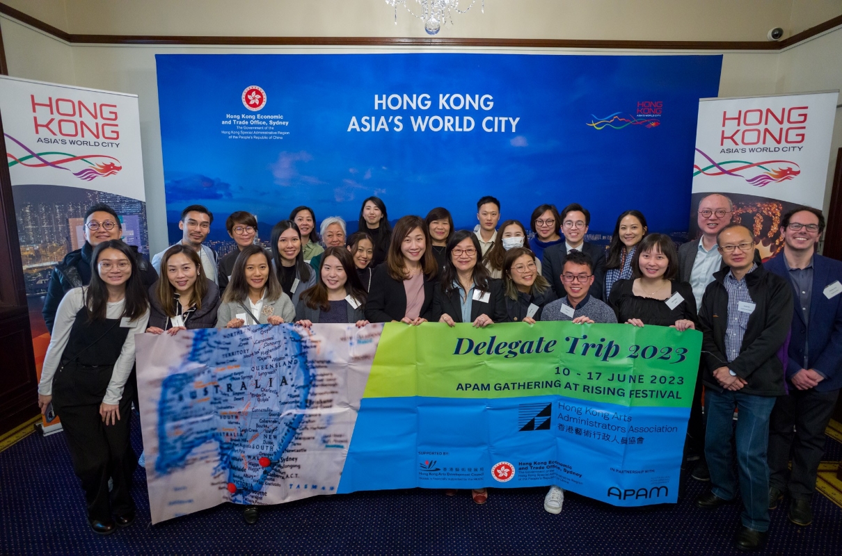 香港駐悉尼經濟貿易辦事處處長林美儀(前排左五)在澳洲悉尼舉辦的“藝術論壇 x 交流酒會”中與香港藝術行政人員協會代表團合照。 林美儀亦向與會者介紹政府多項吸引人才的措施,包括“高端人才通行證計劃”和最近擴大的“人才清單”。 澳洲藝術文化界的翹楚參與論壇的專題討論環節,分享他們在澳洲、香港、中國內地和亞太地區工作的寶貴意見和經驗。他們以成功案例與參加者探討藝術機構之間的夥伴關係和協作策略。論壇後設有交流酒會,以進一步促進香港和澳洲藝術從業者的聯繫。 代表團完成悉尼的行程後,將前往墨爾本參與Australian Performing Arts Market at RISING Melbourne活動,並在悉尼經貿辦支持下,於6月16日在墨爾本舉行閉幕酒會總結行程。 (完) 【編輯:黃璇】