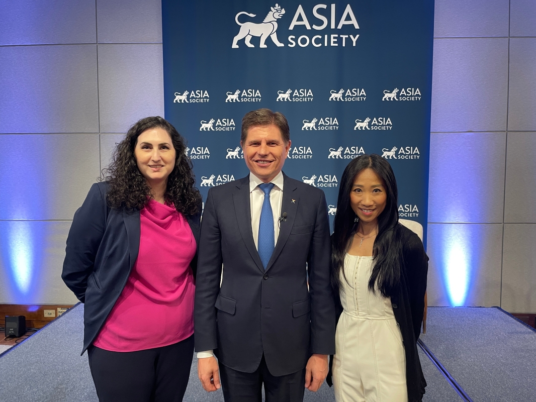 香港駐紐約經濟貿易辦事處處長聶繼恩(右),香港交易及結算所有限公司集團行政總裁兼執行董事歐冠昇(中)和亞洲協會營運總監Debra Eisenman(左)合影。 聶繼恩表示,港交所拓展業務至北美地區的主要金融中心,她感到十分高興。香港在國際金融市場擔當重要的角色。加強與北美企業的聯繫是深受業界歡迎的舉措。 亞洲協會與香港駐紐約經貿辦合作舉辦午餐會。席上,港交所集團行政總裁兼執行董事歐冠昇與嘉賓分享他對香港作為國際金融中心的前景,並談到香港作為東西方之間超級聯繫人的角色。 同日晚上,聶繼恩出席港交所為紐約辦事處開幕而舉辦的慶祝酒會。 (完) 【編輯:黃璇】