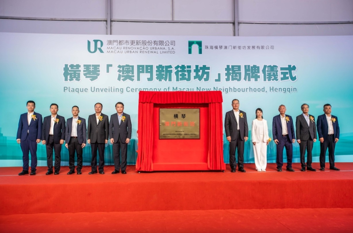 香港新聞網6月27日電 澳門都市更新股份有限公司的項目公司——珠海橫琴澳門新街坊發展有限公司於今(27日)舉行橫琴“澳門新街坊”揭牌儀式。項目工程已進入最後驗收階段,正開展景觀綠化、外牆飾面及道路施工,預計8月完成竣工驗收。 出席揭牌儀式主禮嘉賓包括:橫琴粵澳深度合作區執行委員會主任李偉農、副主任牛敬及吳子健,廣東省委橫琴工委委員、省政府橫琴辦副主任葉真;中國銀行澳門分行行長李光、澳門都市更新股份有限公司股東會主席何燕梅、珠海橫琴澳門新街坊發展有限公司董事長林金城及副董事長謝思訓。