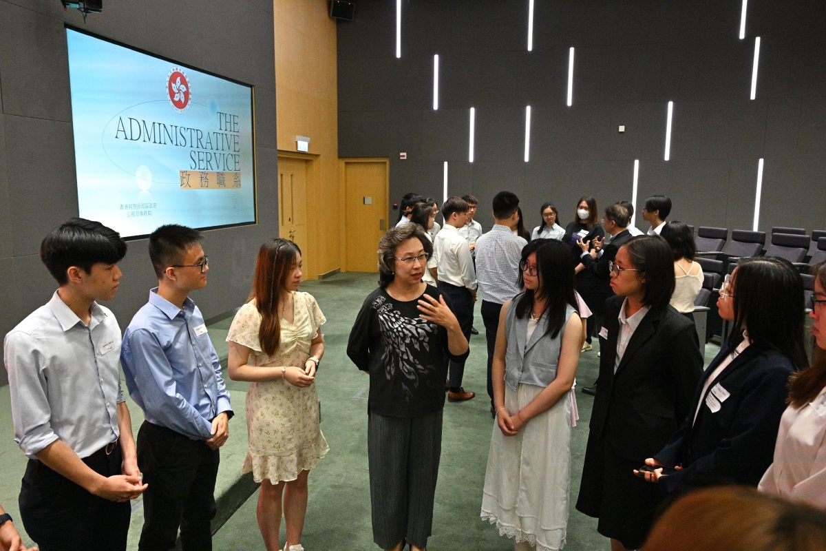 公務員事務局局長楊何蓓茵(中)與參加政務職系暑期實習計劃的大學生見面交流。圖源:政府新聞處 楊何蓓茵在聚會上聆聽實習生分享實習期間的工作點滴和成果,並以自己30多年公務員生涯的經驗,勉勵同學積極裝備自己,服務社會,貢獻國家。她說:“我們非常需要一些熱愛國家和香港、敢於創新、願意迎難而上,熱心服務市民的人才協助政府施政,推動香港在各方面全速發展。此實習計劃正好讓香港青年與現職政務主任共事,親身了解政府的運作和政務主任的使命與角色,幫助參加者做好職業生涯規劃。事實上,在過去五年,每六名新入職的政務主任中,便有一人曾參加這計劃。” “政府會在九月招聘新一批政務主任、二級行政主任、二級助理勞工事務主任、二級助理貿易主任、二級管理參議主任和二級運輸主任。我們早前已公布新措施,讓所有現正修讀大學學士學位或同等學歷,並將在2024年或2025年畢業的同學,可以提早投考上述職位,成功獲取錄的同學將獲有條件聘請,在畢業後加入政府服務,攜手建設美好香港。我鼓勵各位同學積極考慮加入公務員行列,尤其是政務主任,善用你們的知識、才幹及熱誠貢獻社會。” 公務員事務局每年冬、夏季均會舉辦政務職系實習計劃。今年,局方接獲近270份暑期實習申請,從中挑選了66名就讀本地、內地及海外大專院校的學生,安排他們在約20個決策局和部門實習,體驗與政務主任職務相類似的工作。 政務主任是專業的公共行政管理人員,在公務員體系中擔當着重要角色,負責制訂和實施政策,調配資源,統籌推動地區工作和對外宣傳香港等多元化工作。政務主任會定期獲調派至不同決策局和部門,在各項公共政策範疇上磨練本領,累積經驗,擴闊視野。政府將於今年九月另行公布新一輪招聘政務主任的詳情。(完) 【編輯:王瑶】