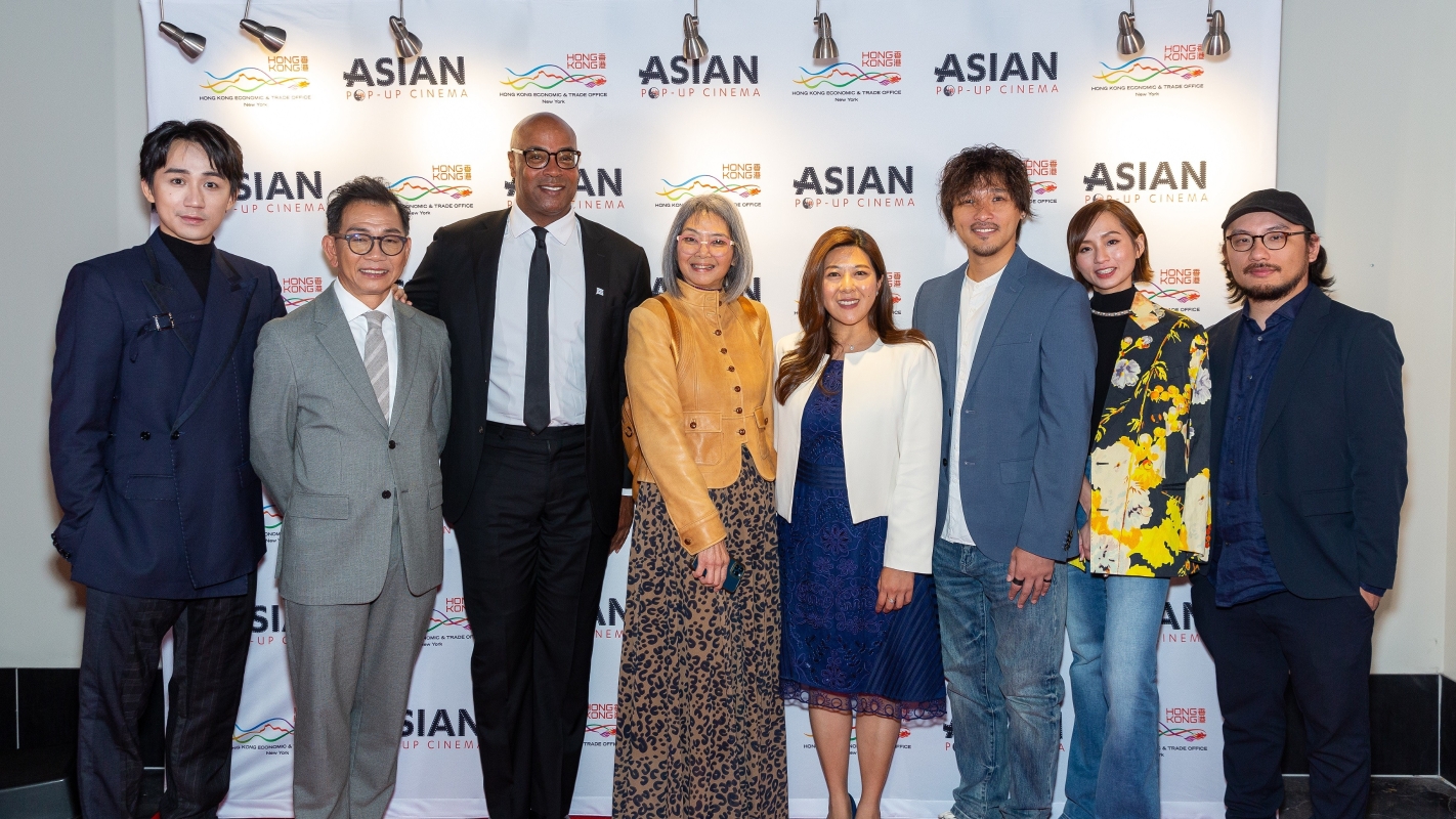 圖示(左起)吳肇軒、Glenn Eden、袁富華、王曉菲、何美智,與梁雍婷。 亞洲躍動電影節香港影片展和頒獎禮由香港駐紐約經濟貿易辦事處贊助。今季選映了五部香港作品,包括《說笑之人》、《白日之下》、《不日成婚2》、《死屍死時四十四》和《把幸福拉近一點》。