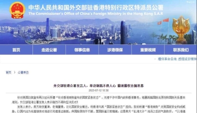中國外交部駐港公署外景。新華社資料圖 中國外交部駐港公署發言人表示,中國政府始終全面準確、堅定不移貫徹“一國兩制”、“港人治港”、高度自治方針。香港國安法和香港國安條例的制定實施,以及香港選舉制度的修改完善,堵住了香港特區維護國家安全的法律漏洞,構築起維護國家安全的堅實屏障。香港特區警方依法對海外反中亂港分子采取行動,香港特區司法機構依法獨立公正審理國安案件,完全符合國際法和國際通行慣例,是維護國家安全和香港繁榮穩定的正義之舉、必要之舉,不容任何外部勢力說三道四。 發言人強調,如今的香港,已進入由治及興的發展新階段,居民依法享有的各項權利與自由更有保障,法治更加健全,營商環境更加完善,發展動能更加強勁,展現出光明前景。香港美國商會今年1月發佈的調查報告顯示,外國在港企業對香港營商環境和法治更有信心。 發言人指出,美方所謂“制裁”再次暴露了其破壞香港繁榮穩定、遏制中國發展的險惡用心。對美方的卑劣行徑,中方必將采取有力措施堅決反制!我們再次正告美方,香港是中國的香港,香港事務純屬中國內政,任何外部干涉注定失敗!我們敦促美方恪守國際法原則和國際關係基本準則,停止以任何方式干涉香港事務和中國內政。(完) 【編輯:豐悅】