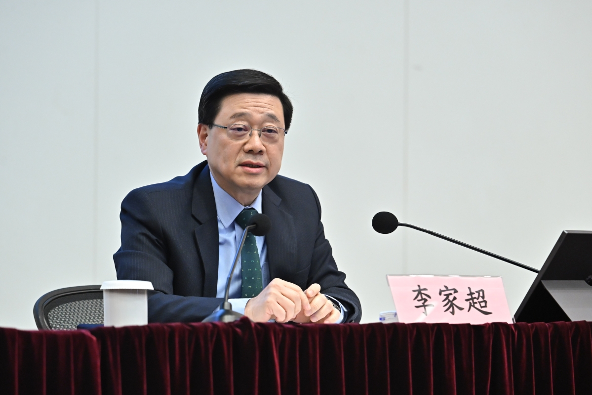圖源:特區政府新聞處 座談會由行政長官李家超主持,中央人民政府駐香港特別行政區聯絡辦公室主任鄭雁雄應邀出席,並作分享發言。超過320人出席座談會,包括司局長等特區政府主要官員、港區全國人大代表、港區全國政協委員、行政會議成員、立法會議員、常任秘書長及部門首長等。