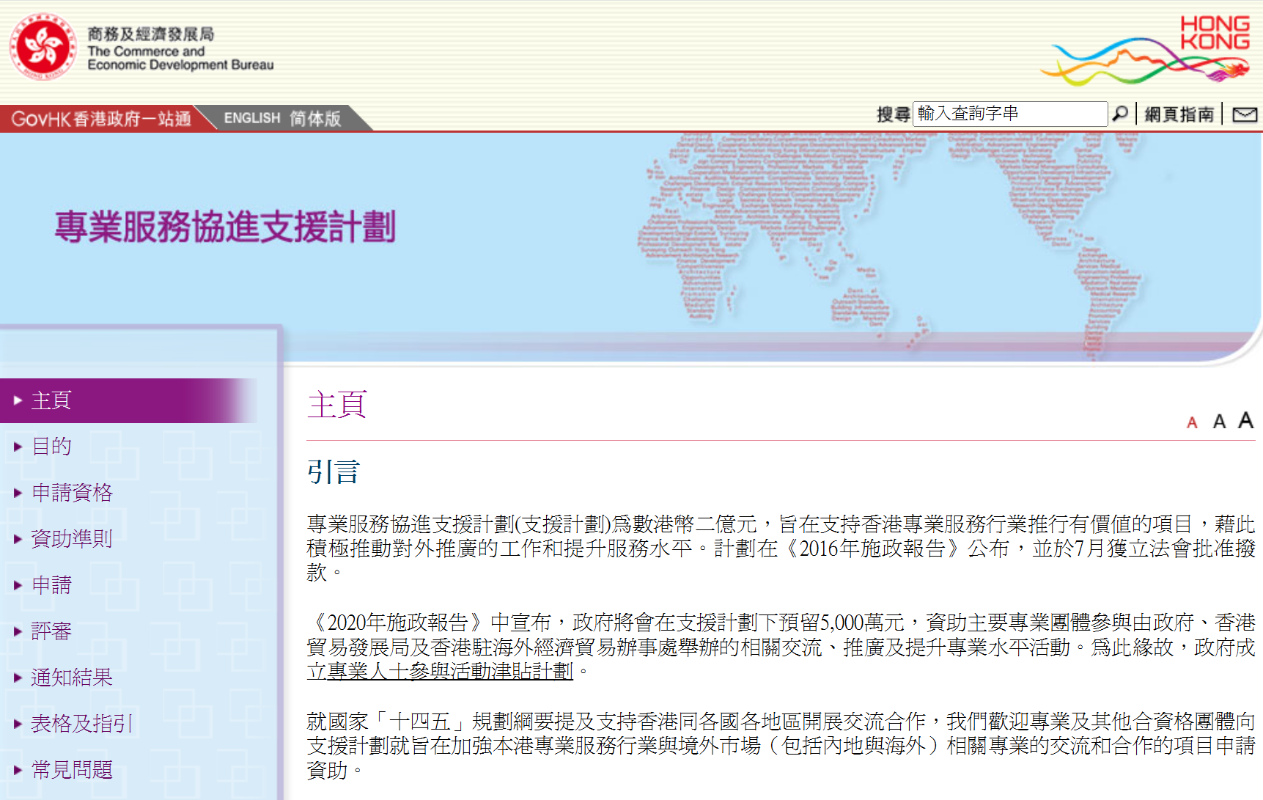 計劃相關網站截圖 為數2億港元的支援計劃旨在資助由業界主導的非牟利項目,以加強香港專業服務行業與境外同業的交流和合作、推動相關宣傳活動,以及提高香港專業服務水平和對外競爭力。 支援計劃下主計劃每個獲批項目的最高資助額為300萬港元或合資格項目成本總額的90%,以較低者為準。主計劃涵蓋的專業服務行業眾多,包括會計、法律及爭議解決、建築、工程、醫療、資訊及通訊科技、設計,以及技術測試及分析等服務。無論是只涉及個別專業服務或跨界別專業服務的項目,均可申請資助。一般而言,推行項目的直接開支均可獲得資助,例如人手開支、活動場地及布置費用、製作及推廣費用、相關項目工作人員及積極參加者在香港以外的交通及住宿費用等。主計劃亦會資助香港境外舉行並為期較長的專業實習/見習計劃,參加人士的交通費和住宿費亦可獲資助。 截至2025年5月初,已有超過120個不同項目獲得主計劃資助,當中包括在香港及香港以外地方舉辦的項目。這些項目包括提升本地專業人士水平的能力提升項目,例如培訓課程、工作坊及考察團;展示香港專業服務行業優勢的外展及推廣活動,例如路演、推介會及參加外地展覽;加強香港專業人士與境外相類行業互動聯繫的交流活動,例如外訪活動及本地舉辦的國際會議和專題講座;對香港專業服務具潛力的境外市場進行調查,以至為專業人士制訂良好做法指引和手冊等。 此外,特區政府已在支援計劃下預留5000萬港元,成立專業人士參與活動津貼計劃,津貼香港主要專業團體在疫情穩定後參與由特區政府(例如香港經濟貿易辦事處)和香港貿易發展局舉辦的相關活動,以加強向內地及海外市場推廣香港的競爭優勢和專業服務。 主計劃和津貼計劃全年接受項目及活動建議申請,並按季度進行批核。新一輪申請截止日期為2025年8月31日。特區政府本月會為有意向支援計劃申請資助的機構舉辦簡介會。如有需要,支援計劃秘書處也可提供一對一的諮詢服務,以討論初步的項目構思或正在規劃中的項目。 (完) 【編輯:梁嘉軒】