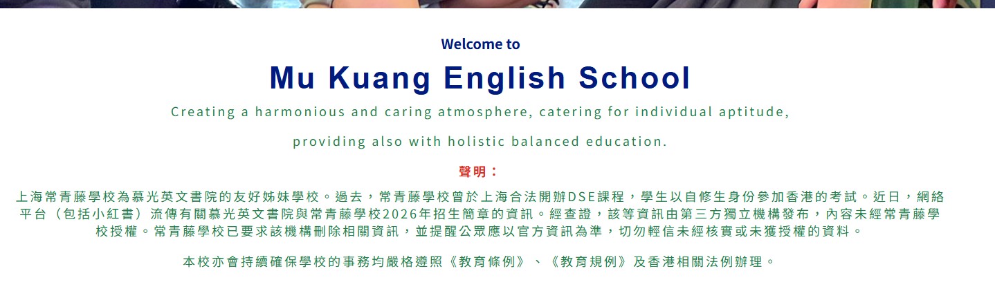 慕光英文書院其後在網站發聲明指,上海常青藤學校為慕光英文書院的友好姊妹學校。過去,常青藤學校曾於上海合法開辦DSE課程,學生以自修生身份參加香港的考試。近日,網絡平台(包括小紅書)流傳有關慕光英文書院與常青藤學校2026年招生簡章的資訊。經查證,該等資訊由第三方獨立機構發布,內容未經常青藤學校授權。常青藤學校已要求該機構刪除相關資訊,並提醒公眾應以官方資訊為準,切勿輕信未經核實或未獲授權的資料。