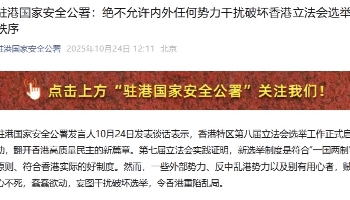 發言人強調,駐港國家安全公署自2020年7月成立以來,堅定依法履職,時刻保持警惕、嚴陣以待,堅決防範、遏制、打擊危害國家安全的行為和活動。隨着香港國安法、《維護國家安全條例》及其附屬法例等維護國家安全法律深入實施,香港已邁入國安法治新階段。駐港國家安全公署堅定支持香港特區毫不手軟依法打擊“以災亂港”行徑,堅決懲治危害國家安全的行為和活動,堅決反制任何外部勢力的插手干預,堅決捍衛香港來之不易的繁榮穩定大勢。“我們正告妄圖‘以災亂港’的反中亂港分子,無論你們變換什麼手法,都一定會受到香港國安法和《維護國家安全條例》的追究嚴懲!”(完) 【編輯:徐嘉儀】
