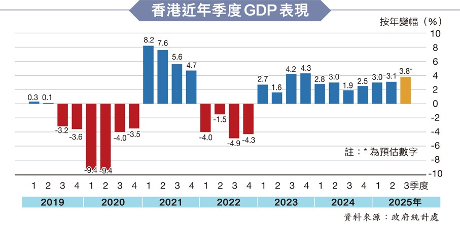 香港中通社10月31日電 題:香港第三季GDP預估增長3.8%勝預期
