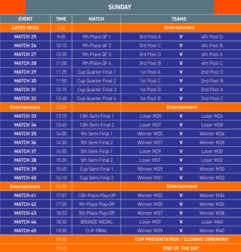 周日比賽安排。(香港國際七人欖球賽官網圖片) 觀眾可於周日早上7時30分開始入場,準備欣賞銀盃爭霸戰的21場許勝不許敗的比賽, 銀盃決賽將於晚上7時鳴笛。 觀賽指南 前往香港大球場的觀眾可以乘搭港鐵在銅鑼灣站下車,經F出口出站,沿恩平道走向加路連山道,隨後沿加路連山道直行即可到達香港大球場。 球場開放時間為星期五下午1:30、星期六上午9:00和星期日上午7:30。香港大球場有4個看台,很多球迷都會選擇在較早時間蜂擁而至南面的看台,所以其他看台的座位相對而言就較舒適,但其實所有看台都有其獨特的優點: 北面看台適合一些希望近距離看到球員、觀賞到他們每一秒的動作,甚至可能與穿着淺藍色的斐濟球迷坐在一起看球; 東面看台位於球場較高的位置,非常適合一些希望較安靜舒心觀看比賽的球迷,而且特別適合在星期日早上、未完全“睡醒”的你來到看賽事; 南面看台就以好玩、遊戲和自由奔放出名。當你想起“香港七欖”時,你可能會聯想到它具標誌性、狂野的一面,但實際上只是佔球場的四分之一看台; 而西面看台是為欖球忠粉而設,他們會在報紙上填寫比賽比分,並非常留心觀看比賽。 出行前一定要檢查好自己的隨身物品有無帶齊,建議前往看球的觀眾可以備好止痛藥、防曬霜、濕紙巾、膠布、已充值八達通卡、太陽眼鏡、雨褸或垃圾袋、外置充電器以及足夠的現金,用來買食物、飲料,抑或是於深夜搭車回家。 香港欖球總會上月21日宣布,“七欖”比賽期間觀眾可以進食,這一定程度上有助炒熱氣氛。不過入場人士均須在進入大球場前出示同日完成的快速抗原測試陰性結果,符合“疫苗通行證”的規定,進場時亦要使用“安心出行”,飲食以外不得“除罩”將維持不變。 購票方式