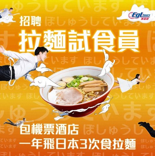 香港旅行社招聘“拉麵試食員” 一年3次飛日本機票酒店全包分享到: