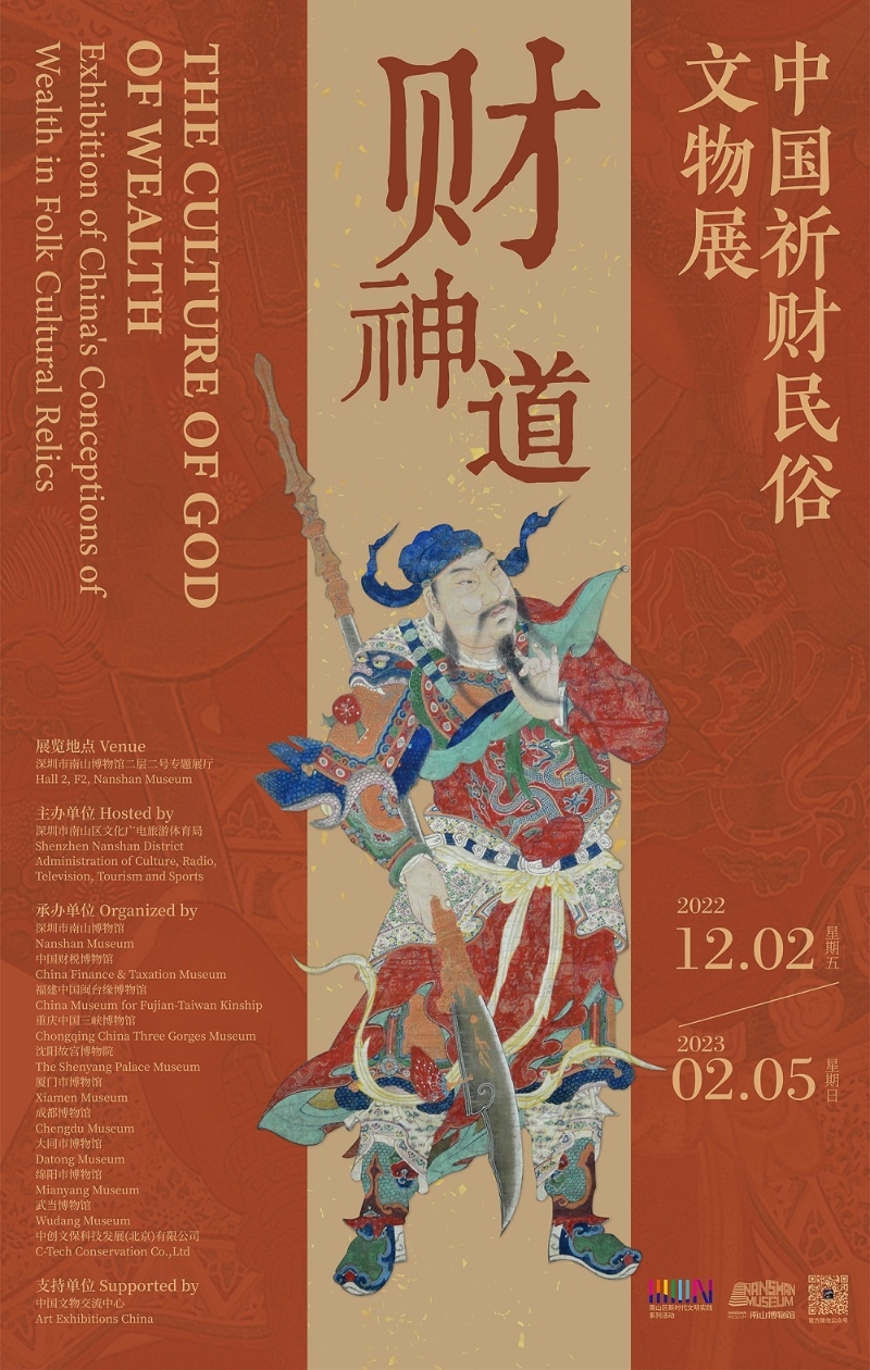 財神道:中國祈財民俗文物展 日期:即日起至2023年2月5日 時間:星期二至日 上午10時至下午6時(星期六至晚上9時) 逢星期一休館(節假日除外) 地址:南山博物館(深圳市南山區南山大道2093號,深圳地鐵1號線桃園站B出口) 費用:免費入場,需預約 【編輯:黃璇】