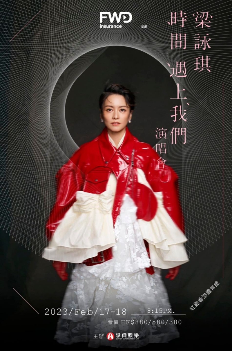 Westlife "The Wild Dreams Tour"香港站 Westlife "The Wild Dreams Tour"香港站 日期:2023年2月14及15日 時間:晚上8時至11時 地點:亞洲國際博覽館Arena 票價:HK$1299;HK$999;HK$699;HK$599 6、2023演唱會:梁詠琪 闊別紅館五年,Gigi梁詠琪決定2月17、18日,再次踏上舞台,舉行一連兩場“梁詠琪 時間遇上我們”演唱會。日前Gigi為個唱拍攝海報,穿上Lady Gaga、Blackpink成員Jennie同樣鍾情的設計師Simone Rocha所設計的鮮紅色漆皮外套,令平日外表柔弱的Gigi,變得霸氣十足。