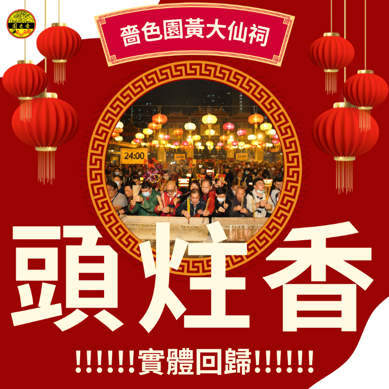 黃大仙祠今年復辦頭柱香(圖片:嗇色園黃大仙祠)