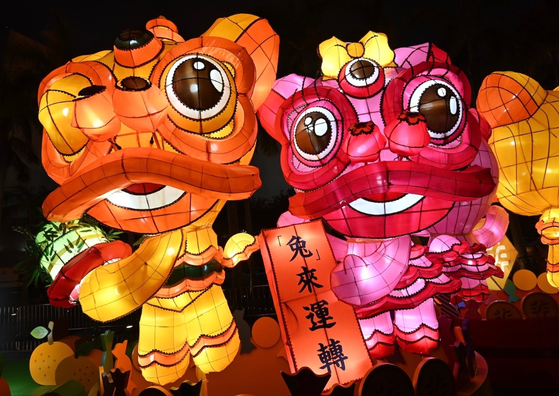 香港新聞網1月13日電 癸卯兔年將至,新春氣氛漸濃,各區陸續推出賀年活動。康樂及文化事務署(康文署)率先在香港文化中心露天廣場舉行市區春節綵燈展,製作兔子、醒獅、新春應節食品和傳統點心的綵燈,歡迎市民到場打卡拍照,費用全免,綵燈展舉行至2月7日。