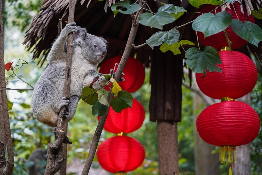 廣州長隆野生動物世界的考拉迎新春(圖片:新華社)