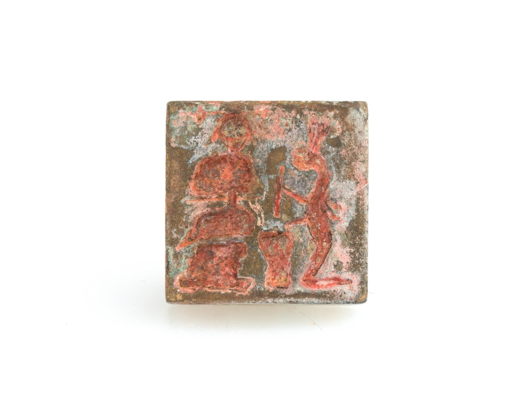 “癸卯說兔”展覽將於2月25日開展(製圖:黃璇) 中國歷史上有不少與兔相關的神話故事,帶給大眾許多想象空間。從東漢晚期開始,搗藥玉兔常與西王母一同出現,或謂玉兔所搗者為西王母的長生仙藥,例如展品中一方龜鈕銅印,恰有此圖像。