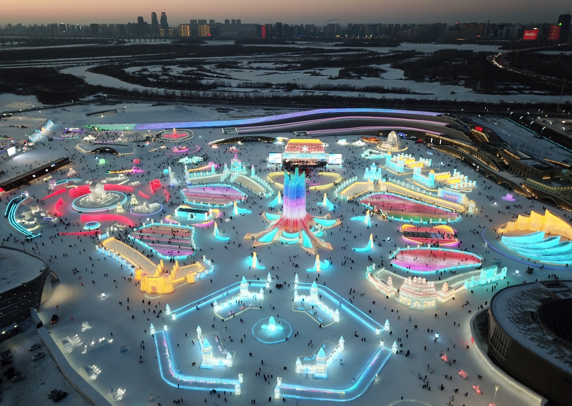 遊客在哈爾濱冰雪大世界園區內遊玩(圖片:新華社) 哈爾濱冰雪大世界是哈爾濱冬季必遊之地,薈萃各種冰雕、雪地娛樂項目和主題表演。冰雪大世界是一年一度的冰雪主題嘉年華,從每年的聖誕節至次年3月初期間開放。在這裏可欣賞漂亮的冰雕、雪雕以及冰雪城堡,夜間在各色燈光渲染下的冰燈盛宴更是迷人,還可盡享各種雪地娛樂項目。 【編輯:黃璇】