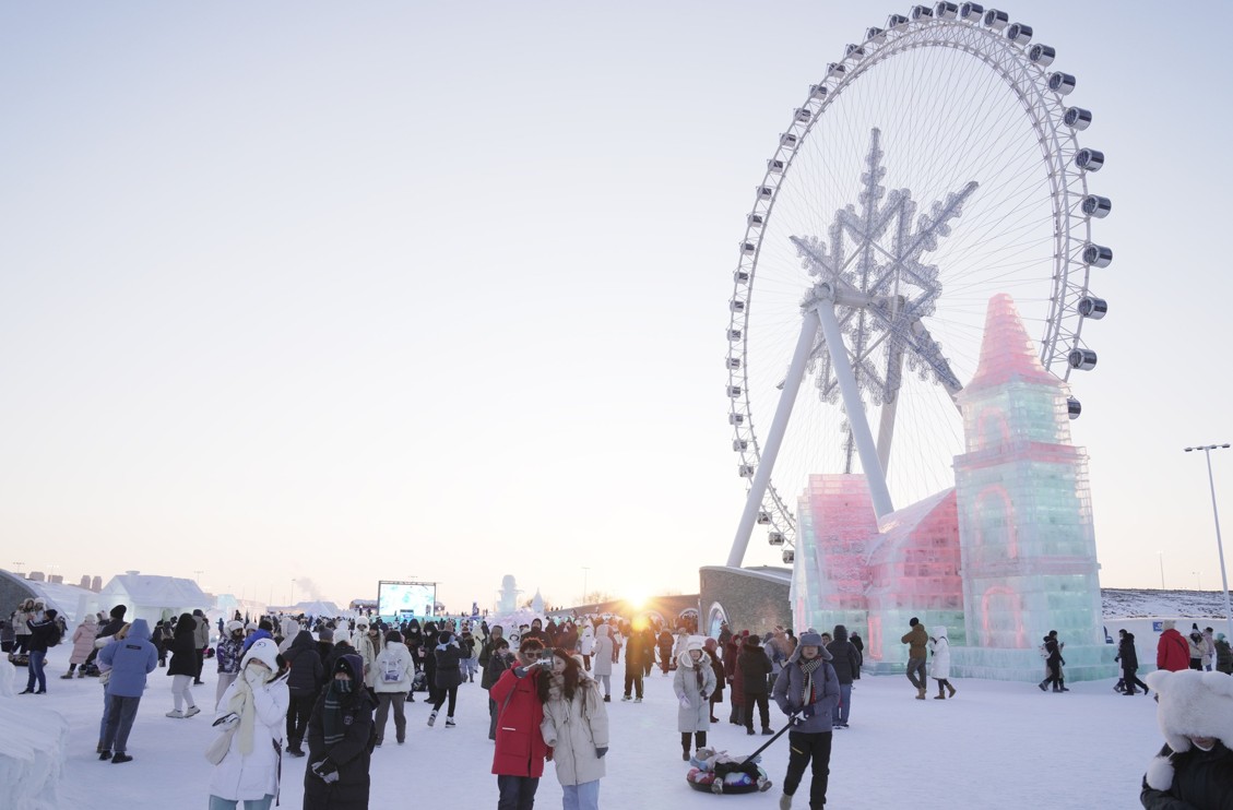 遊客在哈爾濱冰雪大世界園區內遊玩(圖片:新華社)