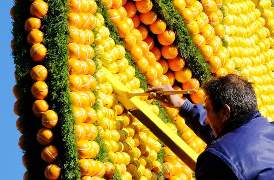 工作人員正裝飾檸檬裝置(圖片:新華社) 芒通(Menton)是一個位於法國、意大利邊境的繽紛小鎮,一年四季氣候溫和,即使是冬天也覺得舒服。芒通除了是法國人的度假勝地,也因為全年超過300天的晴天,讓芒通盛產檸檬橘子,這座人口不足3萬人的小城卻是歐洲產檸檬最多城市。 芒通出產的檸檬酸性較強,檸檬皮含油精量也較高,做成的香氛和其他化妝品香味濃郁,非常受歡迎。每年2月至3月的“芒通檸檬節”(Fête du Citron)是個讓全世界的旅客再度認識這個小鎮的季節,而這個檸檬節在節慶期間,會用掉近100噸的檸檬橘子來裝飾與歡慶,非常壯觀! 有關芒通檸檬節詳情可瀏覽官網(點此)。 【編輯:黃璇】