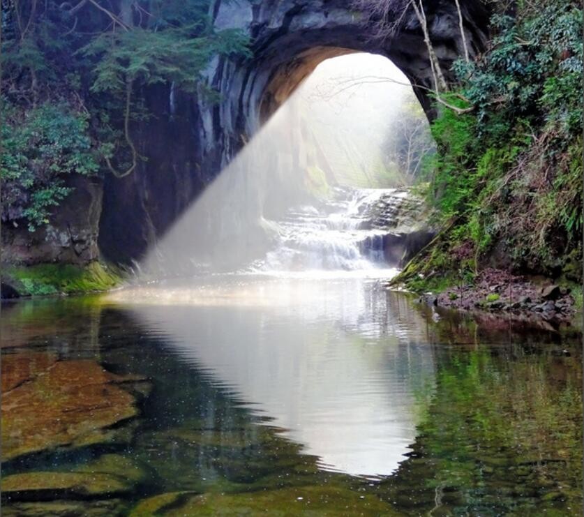 日本龜岩洞窟(圖片:朝日新聞) 日本千葉縣有個神奇的洞穴,它會巧借光影玩浪漫,每年3月和9月的清晨時分,為人們奉上驚艷的“表演”。這個洞穴名為龜岩洞窟,平日裏,它看上去和一般洞穴無異,是個再普通不過的景點,但是每當太陽到某個特定位置,陽光剛好穿過洞穴時,奇跡便發生了,傾瀉的陽光穿過洞穴,光影構成了半個桃心的形狀,與水中的倒影契合,組成一個完美的愛心形狀。 日本豐似湖