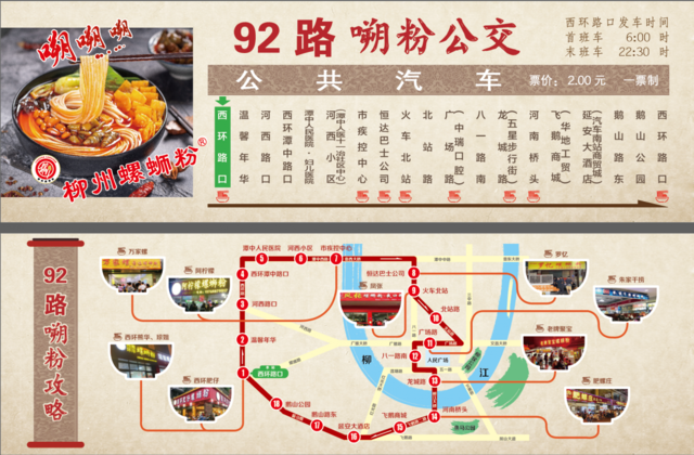 92路嗍粉公交示意圖 線路結合了網紅螺螄粉實體店的分布位置及之前的公交線路走向,不僅方便了市民、游客,更進一步助力柳州螺螄粉品牌打造和產業發展。 下一步當地還將選擇10條公交線路,通過公交線路螺螄粉品牌冠名的方式,打造“**號*路”公交品牌線路,沿線公交線路站牌也將進行特色改造。 【編輯:黃璇】