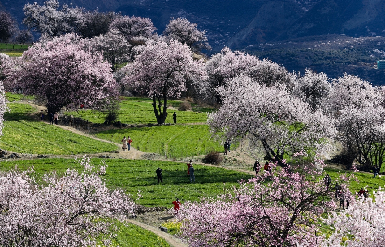 西藏米林市派鎮索松村的桃花進入盛放期。(圖片:新華社)