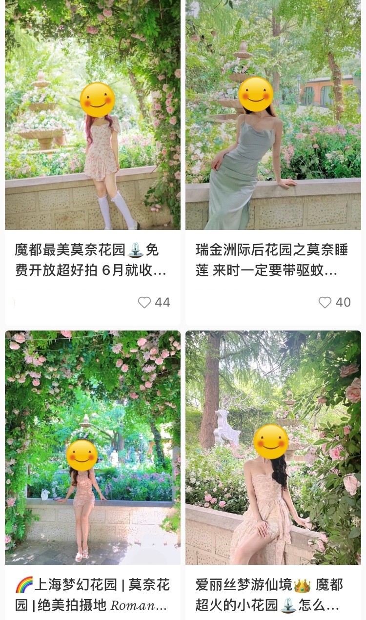 這座酒店裡的花園吸引眾多女生前來打卡。(小紅書截圖) 酒店西門是2021年才啟用的,從西門進去,右手邊沒走幾步便是備受追捧的“莫奈花園”了。網友們所追尋的“莫奈花園”,無外乎是色彩斑斕的花叢,蜿蜒的溪流,鮮花拱形門以及歐式的古典建築構成的畫面。而這些構成“莫奈花園”的元素,在瑞金洲際酒店裡全部都找得到。