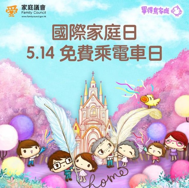 香港新聞網5月10日電 為慶祝“國際家庭日”,家庭議會將於周日(5月14日)舉辦“國際家庭日5‧14免費乘電車日”,市民當天可以免費乘搭所有電車路線,與家人一同暢遊港島。家庭是社會的基石,家庭議會一直透過舉辦不同活動,宣揚仁愛家庭的文化,家庭議會期望藉“國際家庭日”免費乘電車,為市民提供免費親子活動,共享愉快周末。家庭議會同時推出“畢得鳥家庭”主題電車,車身印有色彩繽紛且充滿童趣的“畢得鳥家庭”角色,主題電車將遊走港島,推廣“家‧信守一生”,即“守護家庭”及“關愛家人”的信息。 聯合國將每年的5月15日定為“國際家庭日”,以增進國際社會對家庭議題的認識。