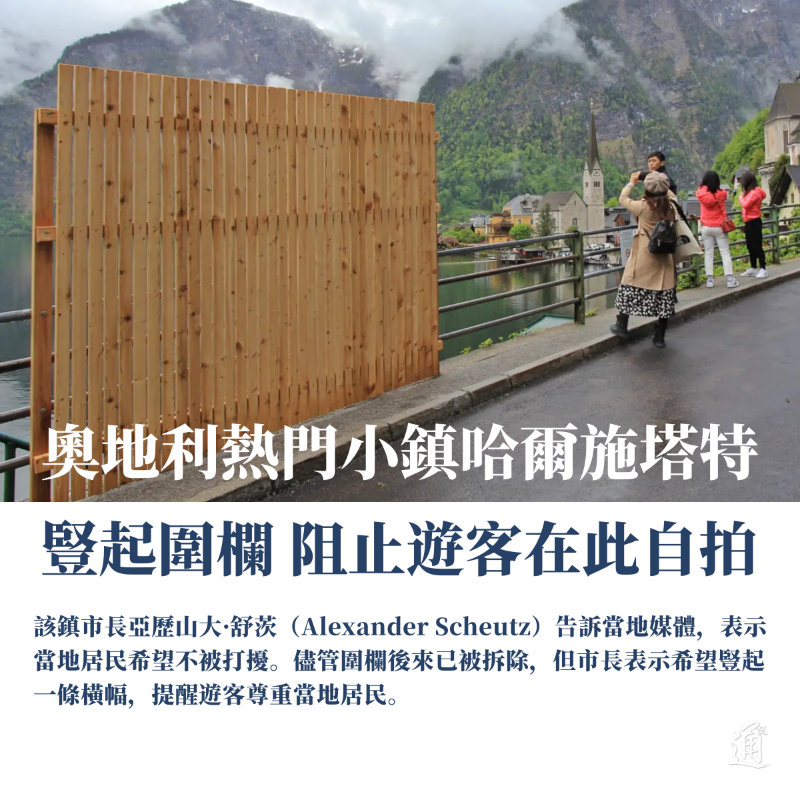奧地利小鎮旅遊熱點豎起圍欄 阻止遊客在此自拍分享到: