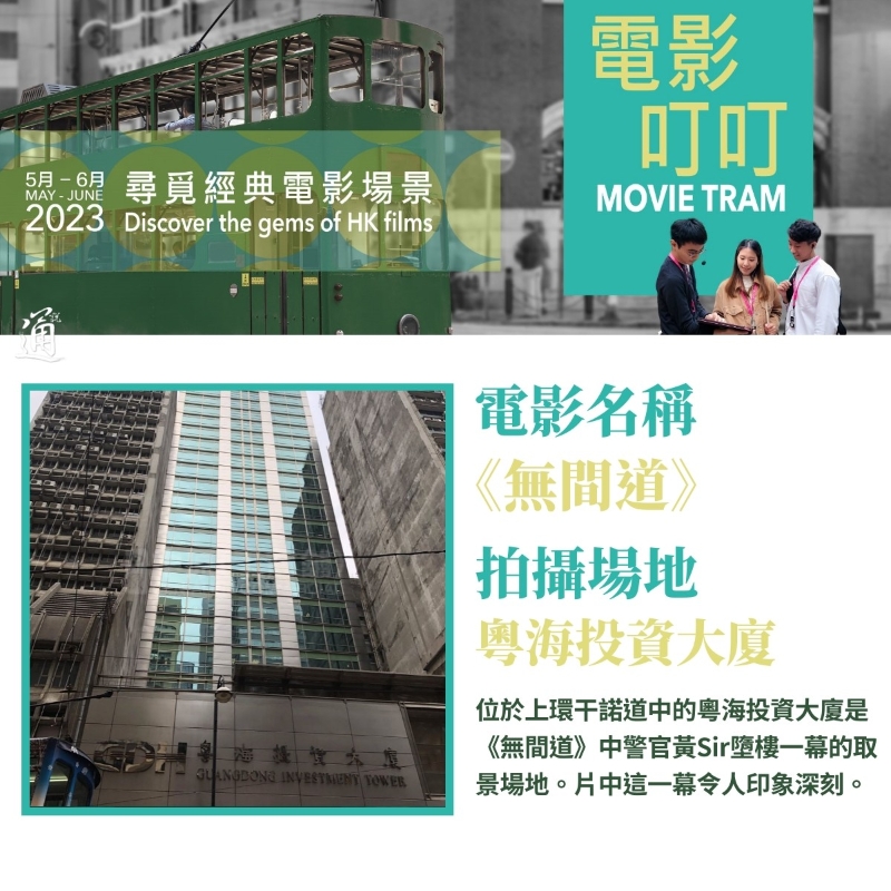 香港新聞網5月23日電 作為“香港流行文化節2023”節目之一,由康文署主辦的“電影叮叮”自推出以來反應熱烈。為了讓更多市民及遊客能體驗這項獨特的文化之旅,節目日前加開26場,並請到關錦鵬、許鞍華等知名電影人擔任嘉賓,在電車上與參與者分享拍攝電影的幕後故事、創作靈感等。 “電影叮叮”活動帶領參加者走訪眾多香港經典電影的拍攝場地,包括九如坊、美輪街、元創方、水池巷、西港城等,尋找電影《胭脂扣》《藍江傳之反飛組風雲》《花樣年華》《無間道》《三更之回家》《狂舞派》等的拍攝場景。一起來回憶這些港產片的經典場景吧!