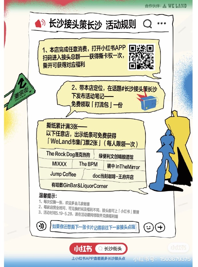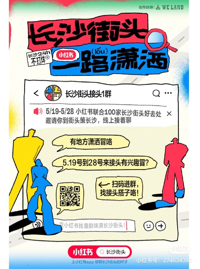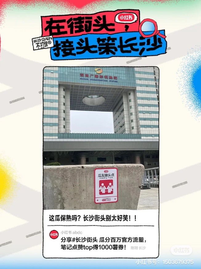 香港新聞網5月23日電 近日,內地社交平台“小紅書”開啟“長沙接頭策長沙”活動,並在長沙街頭設置了很多奇奇怪怪的“接頭點”,聯合長沙街頭超過100個有趣的小店和店主,邀請大家來到街頭,一起接頭聊聊長沙。 小紅書圍繞著當代長沙年輕人的“發財、想躺”的情緒,以及“社畜、廢物”等自嘲,設置了“社畜接頭點”、“豬囉囉接頭點”、“瓜友接頭點”等接頭點,引發用戶模仿打卡。與此同時,小紅書還發布了一組“長沙街頭”系列海報,“沒有一隻小龍蝦能活著出長沙”“上天入地,長沙摩的”……描繪出了長沙人心中長沙非網紅、更本地的氣質。 5月19至28日活動期間,用戶前往參與活動的門店進行任意消費並發布分享筆記,即有機會領取“打流包”一份以及其他更多店鋪福利。此次活動是繼武漢之後,小紅書在近期發起的第二場城市活動,小紅書更多地將重點放在對本地人的情緒洞察之上,打造出了更懂當地的城市營銷溝通範式。