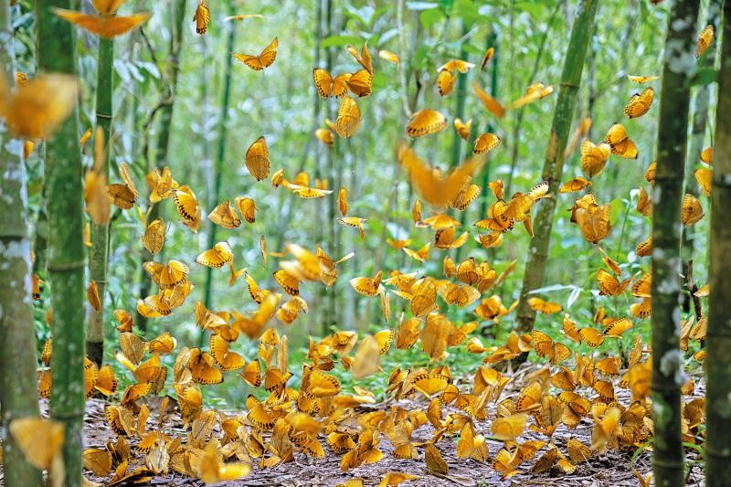 在雲南金平的中國.紅河蝴蝶谷,大量蝴蝶在山林小路上飛舞。(圖片:新華社) 位於雲南省紅河哈尼族彝族自治州的中國.紅河蝴蝶谷常年溫暖濕潤,“一山分四季,十里不同天”的立體氣候特徵孕育出各類蝴蝶400餘種,生物多樣性豐富且保存極為完整。 自2010年向社會開放後,蝴蝶谷已累計接待遊客180多萬人次。獨特的蝴蝶資源呼喚著當地對蝴蝶的特殊保護。近年來,當地出台了蝴蝶谷保護管理條例,讓蝴蝶谷的生物資源保護有法可依、有據可查。當地政府還邀請業內專家學者深入蝴蝶谷開展科考調查,研究生物多樣性相關保護措施。 【編輯:黃璇】