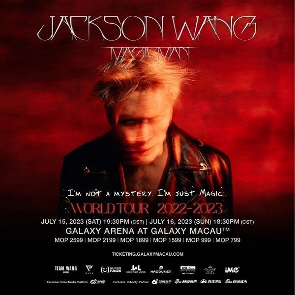王嘉爾7月中旬在澳門舉辦演唱會。 王嘉爾於2014年在韓國正式出道,並通過世界各地的各種音樂表演開始獲得人氣。去年他的身影出現在Coachella音樂節,成為第一位登上主舞台的中國獨唱歌手。今年亦再次受邀表演,足見他的舞台魅力備受國際肯定。2022年發行的最新專輯《MAGIC MAN》登上了Billboard 200榜單中排名第15位,成為首位進入榜单Top20的中國藝人,在Billboard Artist 100中也位列前13位。 “JACKSON WANG MAGICMAN WORLD TOUR 2023 MACAU”詳情: 日期:7月15及16日(星期六及日) 場地: “澳門銀河”銀河綜藝館 購票途徑:銀河票務網(ticketing.galaxymacau.com) 票價:澳門元2,599(VVIP 站立區門票) 澳門元2,199(Platinum - 座位區) 澳門元1,899(Cat 1 - 座位區) 澳門元1,599(Cat 2 - 座位區) 澳門元999(Cat 3 - 座位區) 澳門元799(Cat 4 - 座位區) 【編輯:黃璇】
