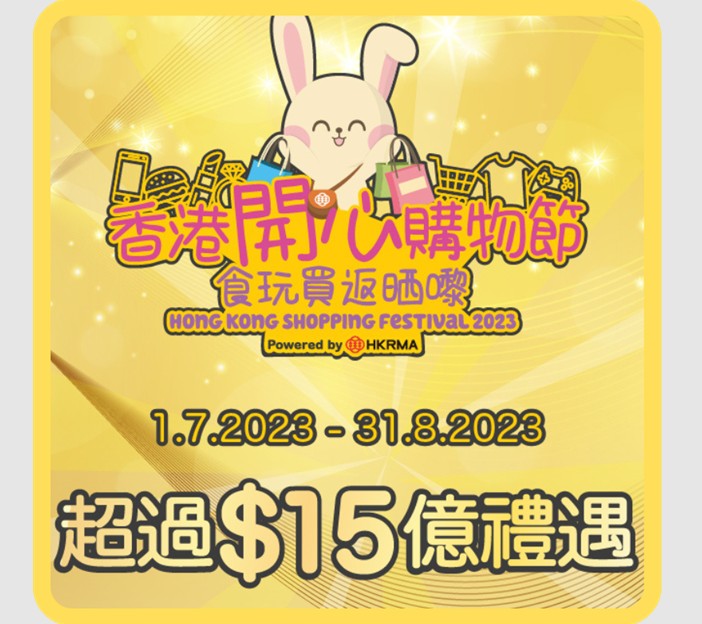 全港近150個品牌參與“香港開心購物節2023”。(圖片:主辦方提供) 香港開心購物節2023 即日起至8月31日,香港零售管理協會舉辦“香港開心購物節”,全港近150個品牌約6,000間零售店,帶來價值超過15億元的禮遇。香港開心購物節共推出三種禮遇,包括購物禮遇、免費禮遇及體驗式禮遇,提供超過260項獎賞。除了購物折扣、減價或贈品優惠,各商店大派超過130萬份免費禮品,限量禮物或現金券將以快閃搶券形式,在AlipayHK及AR Lens應用程式推出。 日期:即日起至8月31日 禮遇名單可以按此瀏覽