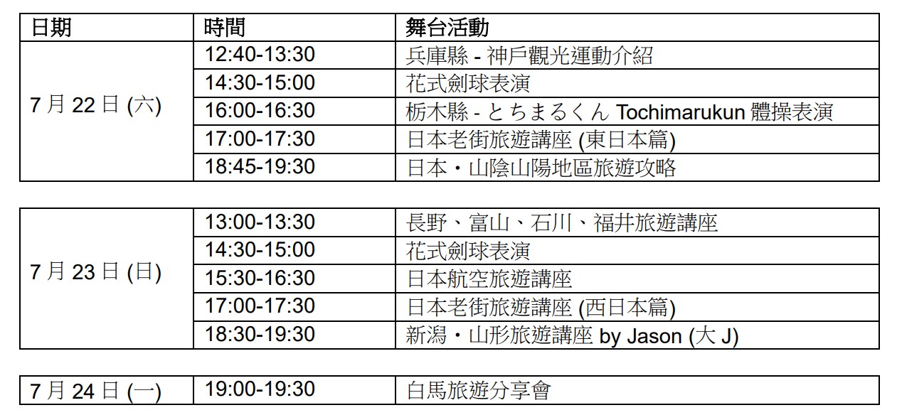 香港新聞網7月19日電(記者 黃璇) 日本傳統文化的魅力不僅體現在藝術和習俗上,歷史建築和地道美食亦同樣引人入勝。港人一向喜愛日本傳統文化,因此日本國家旅遊局(簡稱JNTO)特意以此為主題,於一連7日的香港書展設置“沉浸式日本傳統文化體驗館”(會展中心展覽廳5B),重現充滿昔日風情的老街風貌;更於今個周末安排江戶時代民間玩意之一的劍球表演。館內亦有不少旅遊資訊供大家取閱,為大家提供全方位的日本旅遊攻略。