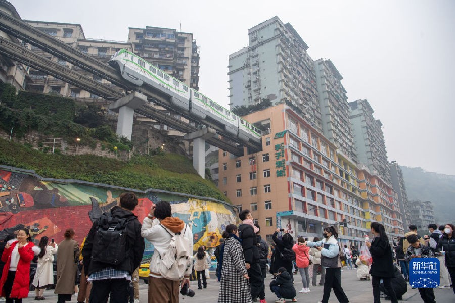 在位於重慶市李子壩站附近,遊客在觀看、拍攝“穿樓而過”的列車。(圖片:新華社) 一同前來打卡的朋友打趣說,“你問我愛你有多深,就像紅岩村地鐵站那麼深。” 來自東北的裴女士一家人也是專程到地鐵站拍視頻打卡,“不愧是魔幻8D城市。俗話說一山還比一山高。而在重慶乘坐地鐵,一站還比一站深。昨天打卡了紅土地地鐵站,今天進入紅岩村地鐵站感覺更深,乘坐8段扶梯很刺激。” 【編輯:黃璇】