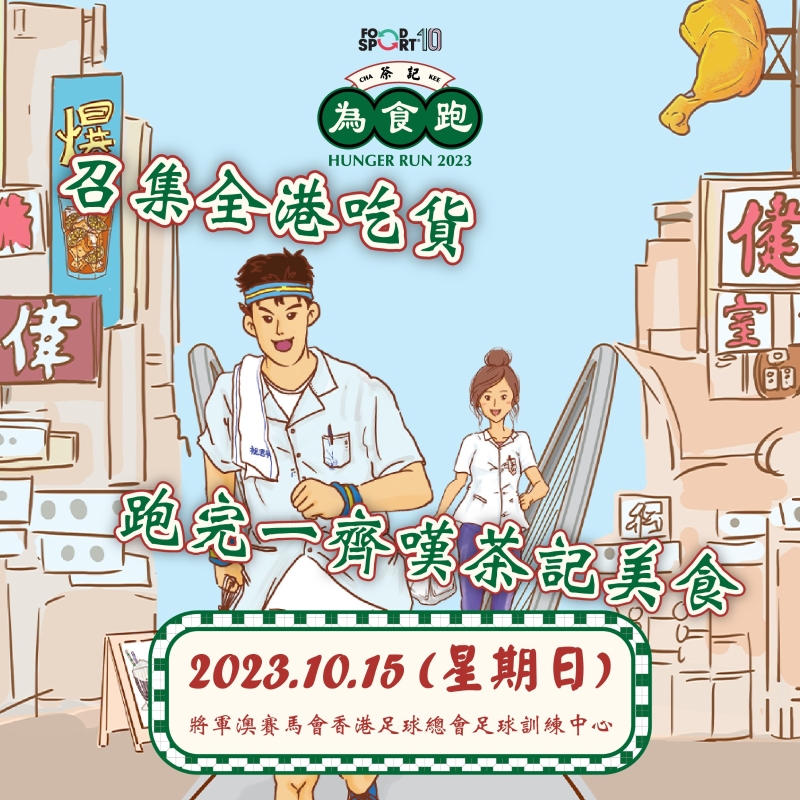 “為食跑 HUNGER RUN”,今年將以“實體跑”形式,於10月15日回歸。 全港首個“茶記”主題慈善跑 今年的為食跑特別攪攪新意思,起用“茶記”為主題,成為全港首個“茶記”主題的慈善跑,將香港地道茶餐廳美食文化元素注入跑步與慈善活動。活動基地設有茶記美食嘉年華,參加在完成賽事後,可享用各種茶餐廳美食;並獲取茶記主題的精美選手包,包括運動上衣、跑襪、行李索繩袋及完成獎牌等,全部以茶餐廳食物造型或圖案設計,別具趣味及紀念價值。
