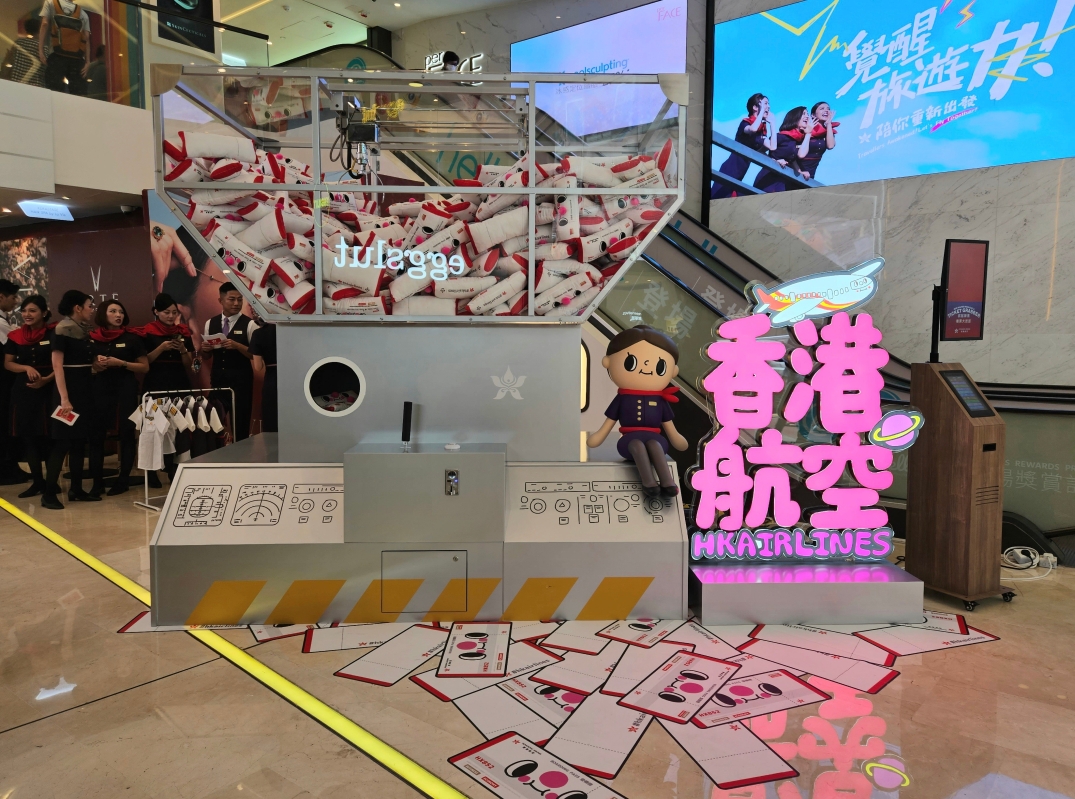 現場設有巨型扭蛋機,備有多款具香港航空特色的限量版周邊產品。(圖片:香港航空) 【編輯:黃璇】