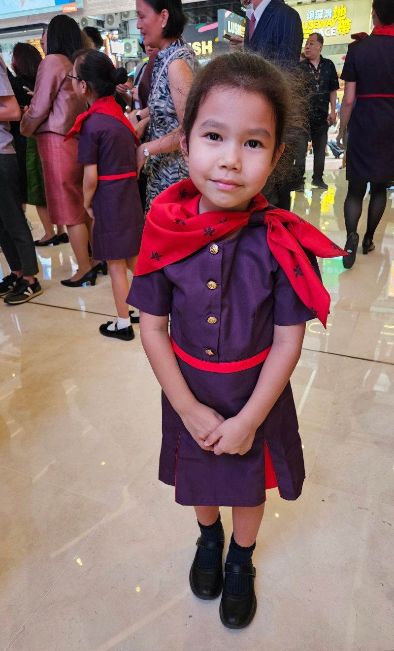 小朋友能穿上香港航空機艙服務員打卡。(香港中通社記者 黃璇攝) 此外,現場設有巨型扭蛋機,備有多款具香港航空特色的限量版周邊產品如毛巾、匙扣、襟章、環保袋、行李牌、電話繩及掛帶匙扣等供參加者扭玩。 是次活動得到香港機場管理局、泰國政府旅遊局(香港辦事處)及名古屋中部國際機場的支持,兩地代表將於現場作泰國傳統舞蹈表演及名古屋忍者表演、分享當地最新旅遊資訊及派送禮物。