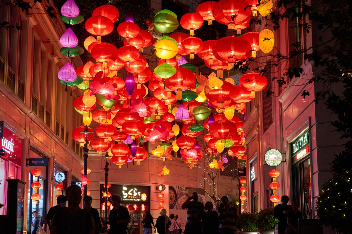 香港新聞網9月1日電 灣仔利東街多年來致力為香港市民打造中秋歡度佳節的打卡聖地,從大月亮到7米高大白兔,還有安全、優美的LED火龍巡遊都深受港人及旅客的歡迎。今年,利東街特意呈獻盛大溫馨的“躍兔 ‧ 迎月”綵燈會,由即日至10月23日,在林蔭大道掛上逾800個吉祥喜慶造型的中式燈籠,將整個公共空間打造成浪漫燈籠海,讓大家與摰愛在漫天璀璨彩燈下,談笑暢聚,一同欣賞全年最美麗的月色。