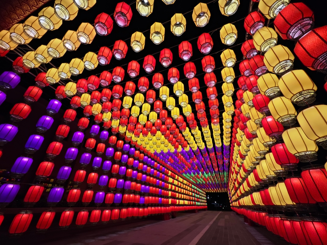 圖為花燈走廊。 花燈節布局由資深電影導演兼當代藝術家簡耀宗設計,海濱長廊將懸掛近3,000個花燈,並展出巨型月亮“開心悅圓”和“孖必兔兔”等燈飾。花燈節亮燈儀式於9月23日晚上7時舉行,其後每日亮燈時間為晚上6時30分至10時,而中秋節及翌日(9月29日和30日)亮燈時間將延長至晚上11時。