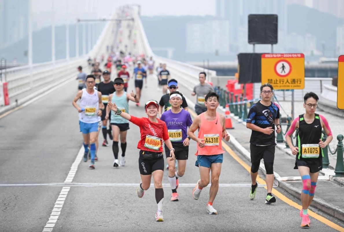 跑手在大橋上馳騁。(圖片:澳門新聞局) 埃塞俄比亞選手稱王封后 馬拉松全場組別比賽概況,男子方面,由埃塞俄比亞選手狄比尼以2小時14分05秒贏得冠軍,亞、季軍分別為肯尼亞選手基普度及馬迪卡;女子成績,同樣由來自埃塞俄比亞的選手安比以2小時33分38秒衝線封后,肯尼亞選手鄧妮及姬朗蒿分別奪得亞軍及季軍。 澳門運動員組別方面,男子冠、亞及季軍分別為王坤、馮瑛瑋及陶永強,而王坤更以2小時24分45秒刷新澳門紀錄;女子頭三甲分別為趙彤彤、莫曉靜及楊美娜。 馬拉松其餘各組別冠軍成績:全馬男A、男B、男C、男D及男E冠軍分別為崔家樂、馬迪卡、MUI SANG LEE、施科里及林澤賢。女A、女B、女C、女D及女E冠軍分別為楊艷、陳潔麗、趙彤彤、方曉蘭及曹新萍。 半程馬拉松成績,肯尼亞選手森比路分別包辦男子全場及男B冠軍,男A、男C及男D冠軍分別為卡浩拿、安加利及鍾志平;半程男子澳門,冠軍黃展華,亞軍梁仟羲,季軍鍾耀明;女子全場冠軍由肯尼亞選手堅高妮奪得,兼贏得女B冠軍,女A、女C及女D冠軍分別為安達美貝琪、許忠煌及傅崗明;半程女子澳門三甲,冠、亞、季軍依次為許朗、許忠煌及周杏花。 迷你馬拉松成績,男子A、B、C組冠軍分別為葉穎陶、何志東及卡達卡;女子A、B、C組冠軍分別為梅綺琪、伍詠欣及羅莎慕達。