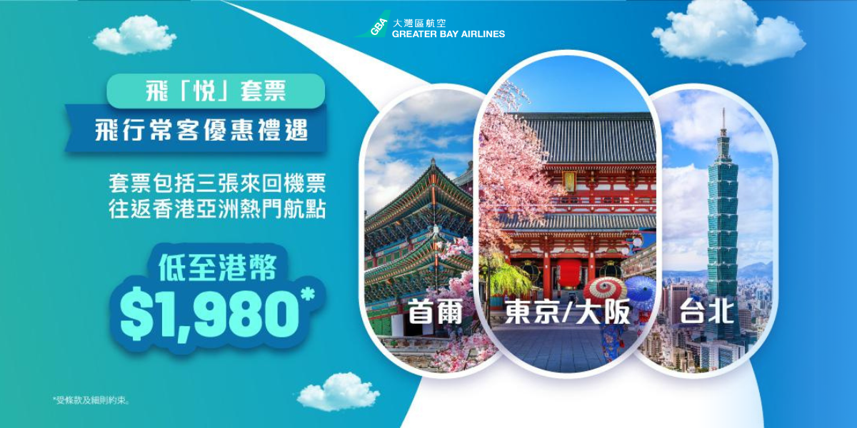 大灣區航空套票優惠 三套來回機票加20kg行李1980元起分享到: