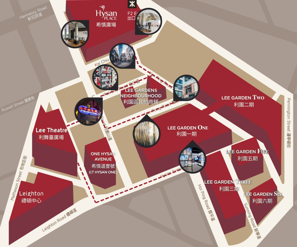 導賞團將帶領公眾漫步利園區,穿梭多條特色街道和唐樓群。參加者先在希慎廣場開展一趟“垂直之旅”,深入了解商場的空間設計及永續建築理念,再途經人氣麵包店Bakehouse,以及全港首家人文圖書館打書釘等地,探索新舊融合的社區風貌及多元色彩。 轉入白沙道,參加者抬頭可看到髹上紅黑設計風格的樓宇外牆;走進活化建築Bizhouse拾級而上,更可從活化天台gLEEful Rooftop俯視利園區一帶的景觀。 導賞員亦會帶領參加者走訪區內百年老字號,呈現歷久彌新的人文風景。於指定導賞團時段,參加者更有機會於懷舊港式餐廳“太平館”享用經典菜式瑞士雞翼,細聽白沙道選址與昔日利舞臺的淵源。路線亦會途經區內多幢唐樓及活化建築,讓公眾有機會近距離細賞上世紀留存至今的建築特色和設計細節,包括香港第一代的住宅電梯“老爺𨋢”,以及香港上世紀五六十年代的復古紙皮石地磚。 利園區每條街道都具有獨特個性,為整個社區增添多元色彩及活力。從白沙道走到蘭芳道,參加者可感受到截然不同的街道特色。昔日蘭芳道曾是眾多經典電影的拍攝場景,例如王家衛執導的電影《花樣年華》及《2046》便曾於開業逾半個世紀的金雀餐廳(現為為聖安娜餅屋)取景拍攝;南北樓亦為武打巨星李小龍昔日取景的拍攝場地。 導賞路線的最終站,將會帶領參加者回到近月完成翻新工程的利園一期,參觀《百年光影︰銅鑼灣的絢麗今昔》相片展覽。活動展出各種珍貴的歷史照片和精選藏品,與公眾共同回顧利園百年來的歷史變遷,其中一批20年代利舞臺興建工程的珍貴照片亦將首次曝光。展覽亦包括利園遊樂場開幕徵聯比賽得獎作品集、昔日利舞臺表演節目的多本場刊及所使用的“虎頭印”、利園酒店西餐廳陶然亭全套餐具等經典展品。場內更設有利舞臺及利園區70年代的建築模型,供公眾近距離觀賞舊時劇院設計,以及利園區的舊有社區面貌。