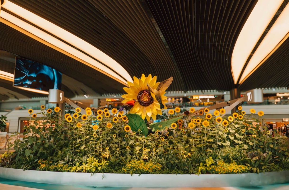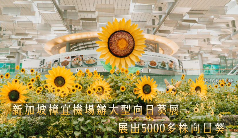 新加坡樟宜機場首次舉辦以花卉為主題的大型展覽。(圖源:樟宜機場) 根據樟宜機場發出的公告,整個展覽延伸至機場外Hub & Spoke,并在第二搭客大廈(T2)和第三搭客大廈(T3)的離境大廳,展示栩栩如生的巨大向日葵雕塑,分別高達5米和8米。 樟宜機場表示,除了可以觀賞各類不同品種、鮮艶奪目的向日葵,遊客也能够通過該展覽,了解向日葵的文化意涵、其生態的重要性以及該類花卉的各種各樣用途。